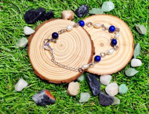 Pulsera de perlas naturales y lapislázuli.